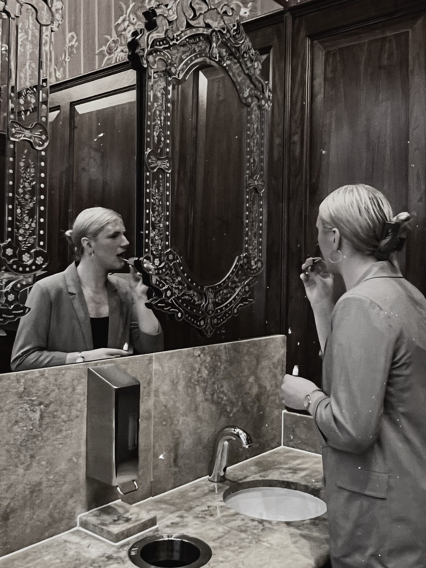 The alarm goes off. I press stop and grab my phone. It’s 4 am. I remove my blanket and, with my eyes barely open, head to the bathroom. I’m blinded by the white overhead light. I am now awake. I grab a towel and drench it in hot water as I prepare my face for my morning routine. As the hot towel warms my face, I prepare my razor. I begin to shave. First with the grain. Then against the grain. I rinse. Double cleanse. Then moisturise. I make my way back to my room to pick out an outfit for the day. Every morning, I have the same thoughts. Do I look masculine in this? Are my shoulders too pronounced? Should I work from home? Eventually, I try to overcome the blaring dysphoria, and I move to apply my makeup. Hide the shadow. Conceal the blemishes and shape the face. I stop for a moment and look back at the reflection in the mirror. I take a deep breath and decide maybe I do look alright. With that, I leave my home and make my way to work. Another morning. Another routine done.